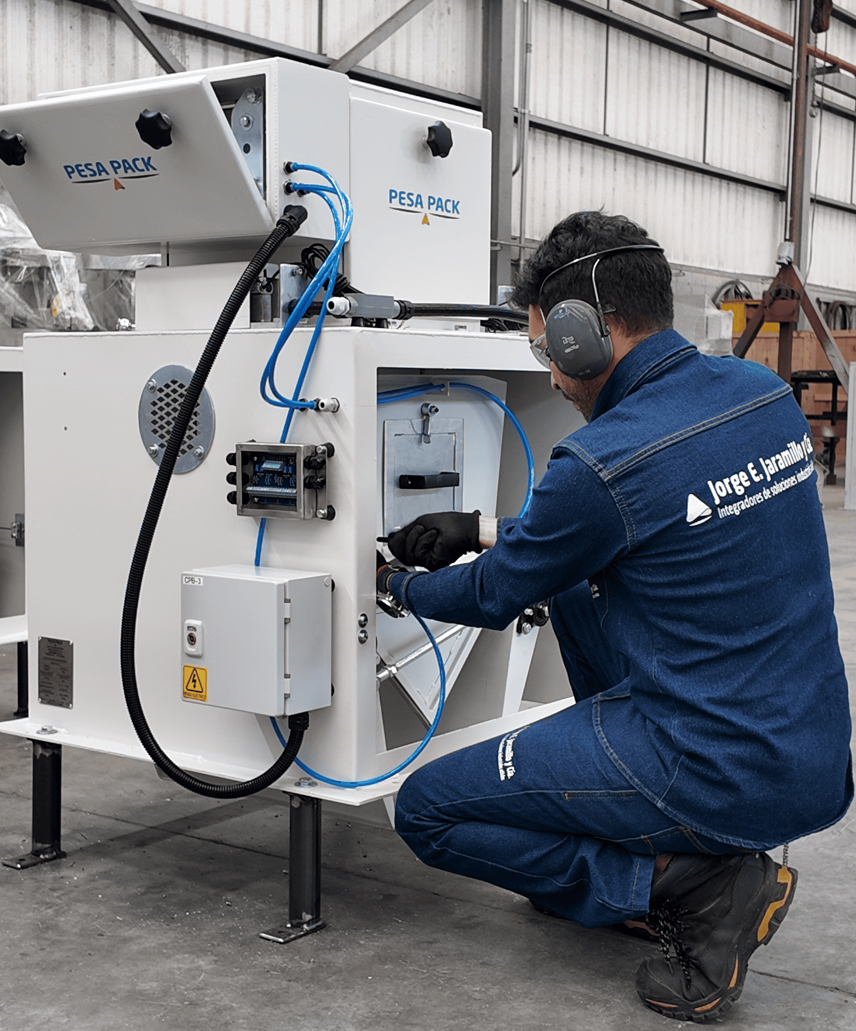 Jorge E. Jaramillo V y Cia S.A.S es una empresa líder en el mercado Latinoamericano de maquinaria para procesos de pesaje y empaque de presentaciones entre 10 y 2,000 kg. Fabricamos nuestros equipos bajo la marca registrada PESA PACK, caracterizados por un alto nivel de calidad y precisión para ofrecer la confiabilidad requerida en el control de productos a granel. Nuestros equipos cuentan con un rápido retorno de la inversión, pues por medio de un pesaje preciso podemos generar ahorros en desperdicios de producto, buen manejo de inventarios y control de calidad. Somos además integradores de soluciones industriales sólidas, ya que integramos nuestros equipos de pesaje y empaque con máquinas complementarias de nuestros representados para brindar una solución global de proceso. Nuestra mayor fortaleza recae en la capacidad de reconocer, diseñar y fabricar la solución óptima para cada aplicación.